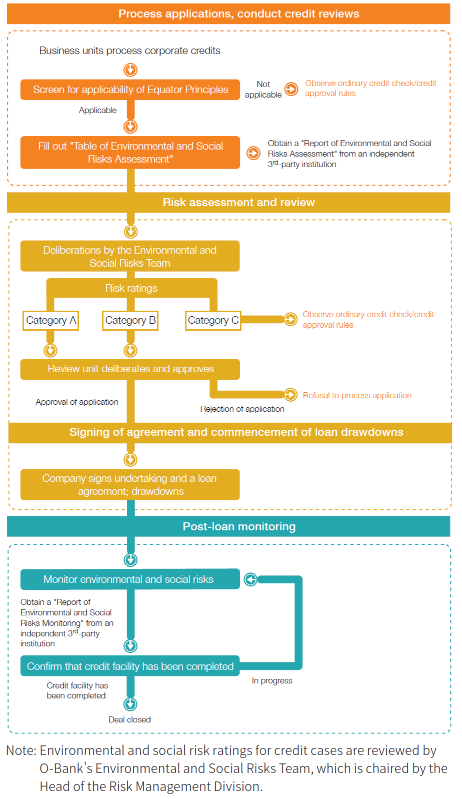 為落實赤道原則環境與社會風險管理策略,本行已建置完整赤道原則專案融資遵循制度架構。