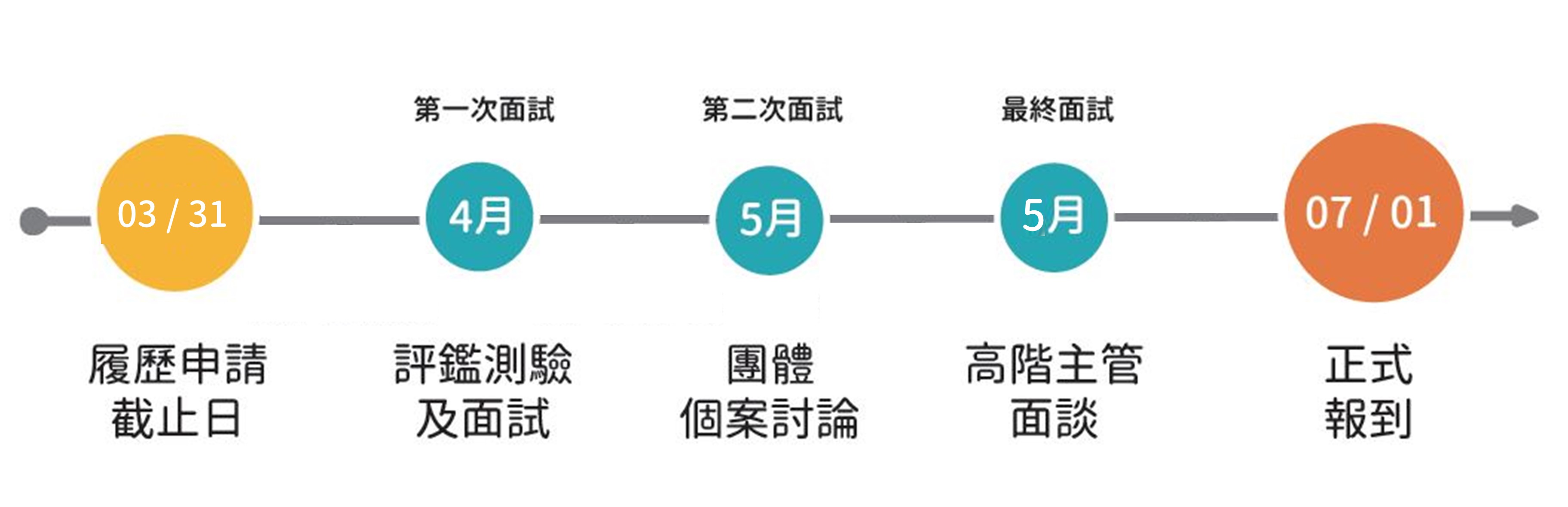 學歷經歷:大學 / 研究所應屆畢業生 或 2年以下工作經驗者 科系背景:不限科系,商管、資訊相關科系尤佳 外語能力:具多益成績800分以上同級之外語能力 特質條件:團隊合作、創新思維、計畫與組織、主動積極 加分項目:低收入戶 / 中低收入戶 / 特殊境遇家庭證明 / 金融證照 / 競賽成績 / 外語檢定或社團表現等