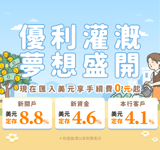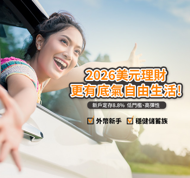 不只是存款,更是為了更有底氣的自由生活 理財的終極目的,是為了讓你在 30 歲之後擁有更多選擇權,在 40 歲以後擁有一份生活好品質的底氣。無論是想來一趟愜意的遊歐美、旅行入住星級飯店、換一輛更舒適的車、規劃孩子的教育基金或是自由的金流調度都是最強後盾。 2026 年這個機會與挑戰並存的時代,善用王道銀行 美元定存年利率4.1%~8.8% 的優利專案,能讓你的資產在美元市場穩定增溫。不被動等待薪資調幅,而是主動出擊,透過低門檻、高靈活度的美元定存幫自己的薪水大大加乘。生活是自己的,理財是為了讓生活更有質感。趁著專案24小時線上即可申請,立即登入王道銀行 APP,親身感受那份「美元定存利息入帳」的成就感吧!