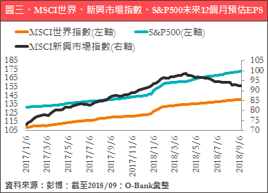從基本面來看,今年3月以來市場不斷下修對MSCI新興市場指數的獲利能力,然而,同期間MSCI世界指數的未來12個月預估EPS在美國的帶領下不斷上升,顯示成熟國家和新興市場的基本面開始分道揚鑣,因此在新興市場股市轉趨看淡下,建議可轉換至基本面相對穩定的全球型股票基金或美股基金。
