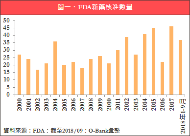 美國食品藥品監督管理局(FDA)在川普上任後,加速了藥品審批速度,今年來前9月累積新藥審核通過數量已達到37款,依此速度,要超過去年全年46款新藥通過紀錄應非難事。而一旦審核通過,新藥就可以在美國上市出售,如此一來,開發的藥廠就能加速回收研發成本,進而可能步入獲利階段,勢必有利藥廠股價。