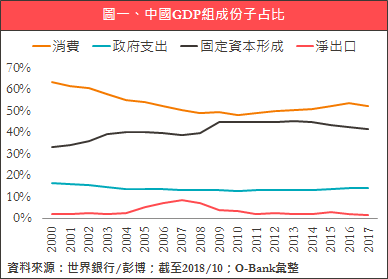 雖然近年中國經濟成長呈下滑趨勢,但內需消費始終是支持經濟增長最大來源,且在中國政府仍堅持「調結構、穩增長」基調下,消費佔GDP比重近年持續上升,足以抵銷投資降溫、淨出口滑落的衝擊,經濟逐步完成由「投資+出口推動」切換成「內需消費拉動」模式,出現「硬著陸」的機率低,經濟下行風險仍可控,無需過度擔憂。